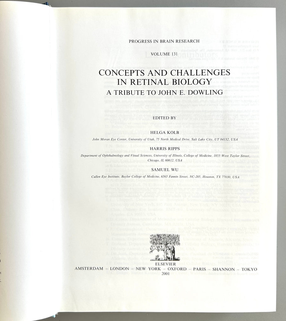 Concepts and Challenges in Retinal Biology A Tribute to John E. Dowling. Volume 131 Original 2001 Hardcover near new with dust jacket. 742 pages. H. Kolb, with Harris RIpps and Samuel Miao-sin Wu contributors. Elsevier Science Imprints.